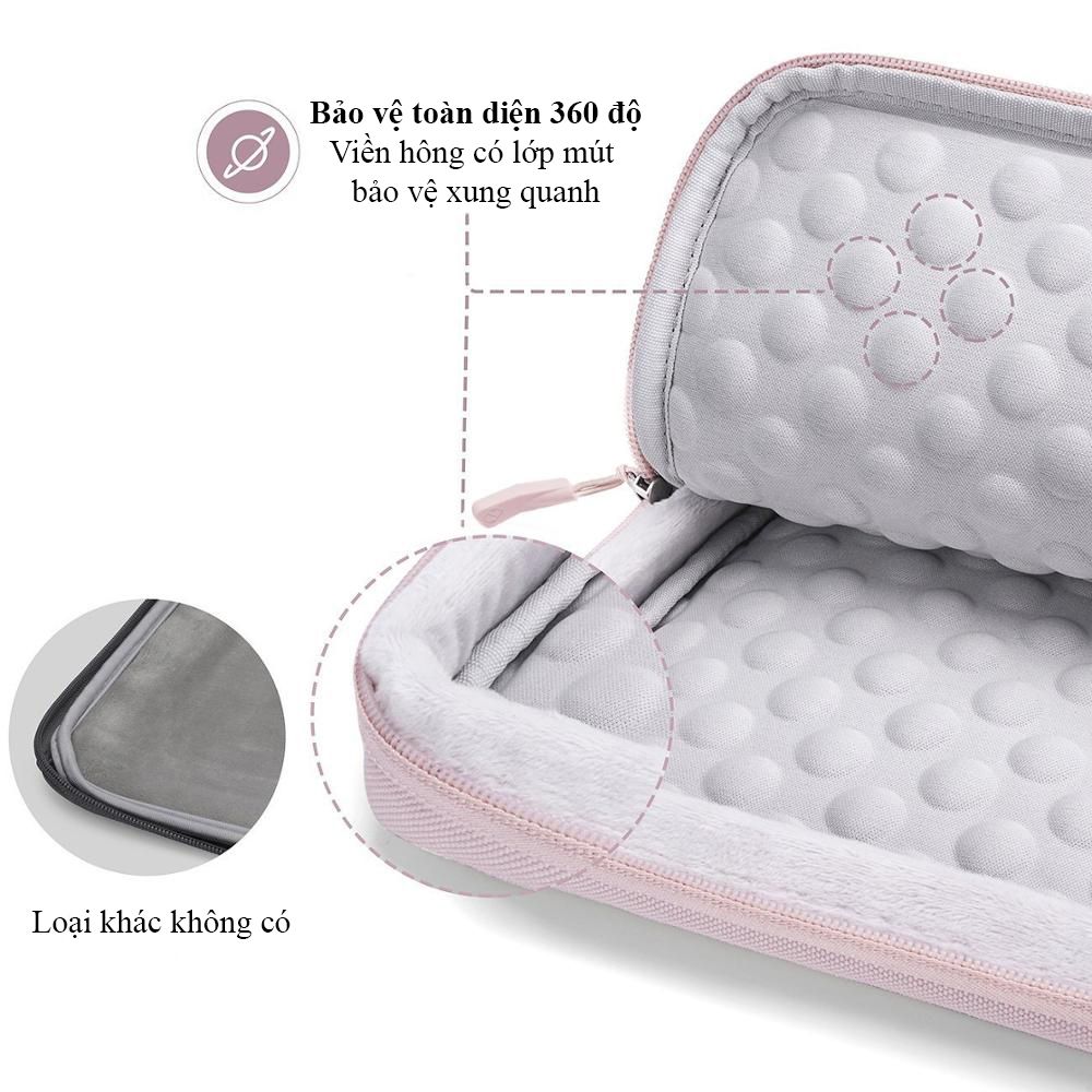 - Tính năng: Chống sốc 360 độ, viền hông có lớp chống sốc viền xung quang. Hai bên mặt có lớp chống sốc 3 lớp giúp chống sốc cao, toàn diện, chống nước. Chất liệu được làm bằng vật liệu cao cấp giúp bền màu, thời trang, sang trọng. Thiết kế túi mỏng, nhẹ.